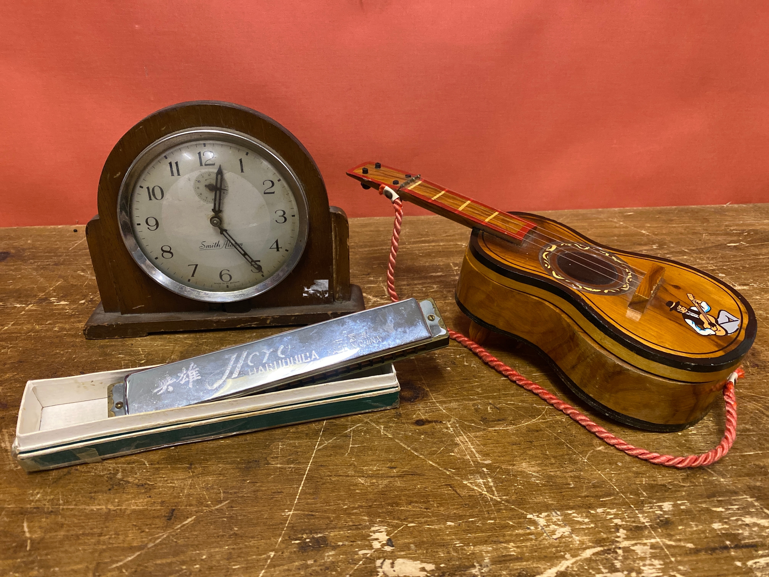 Smith Alarm Clock, Musical Jewellery Box and Harmonica