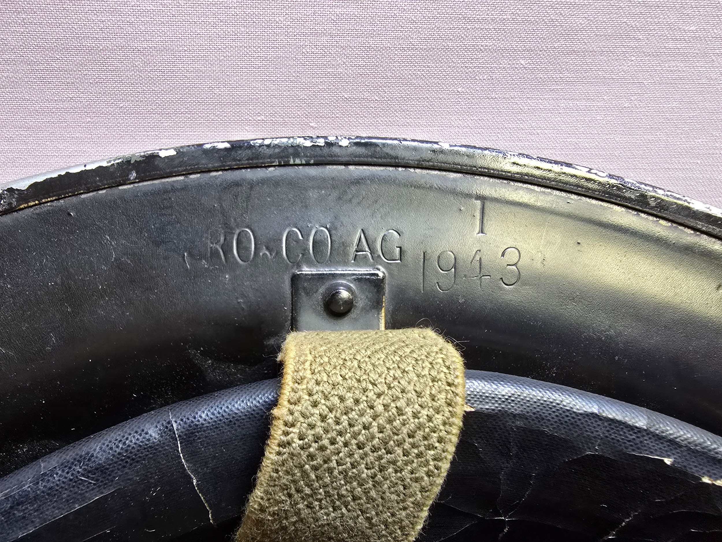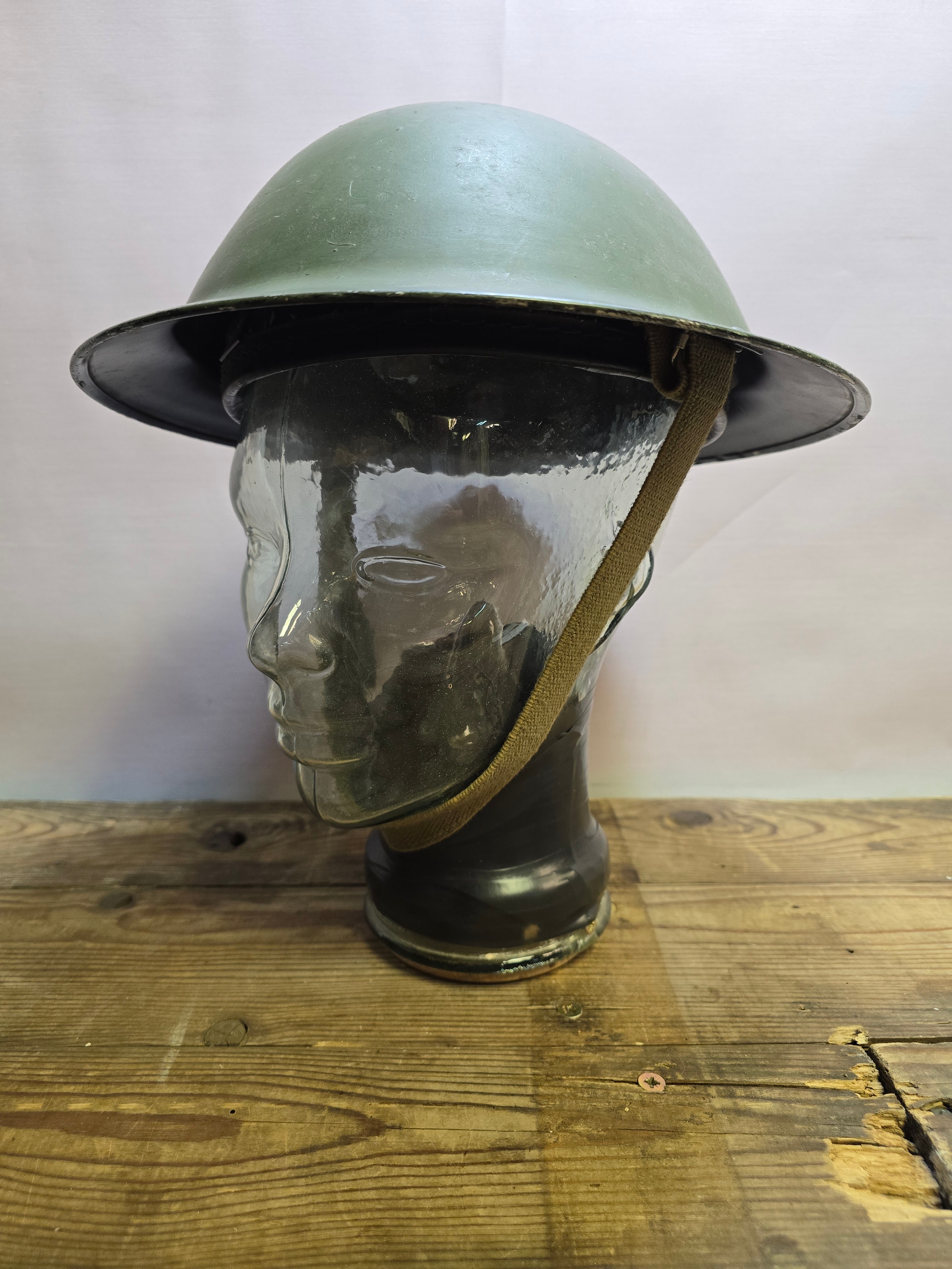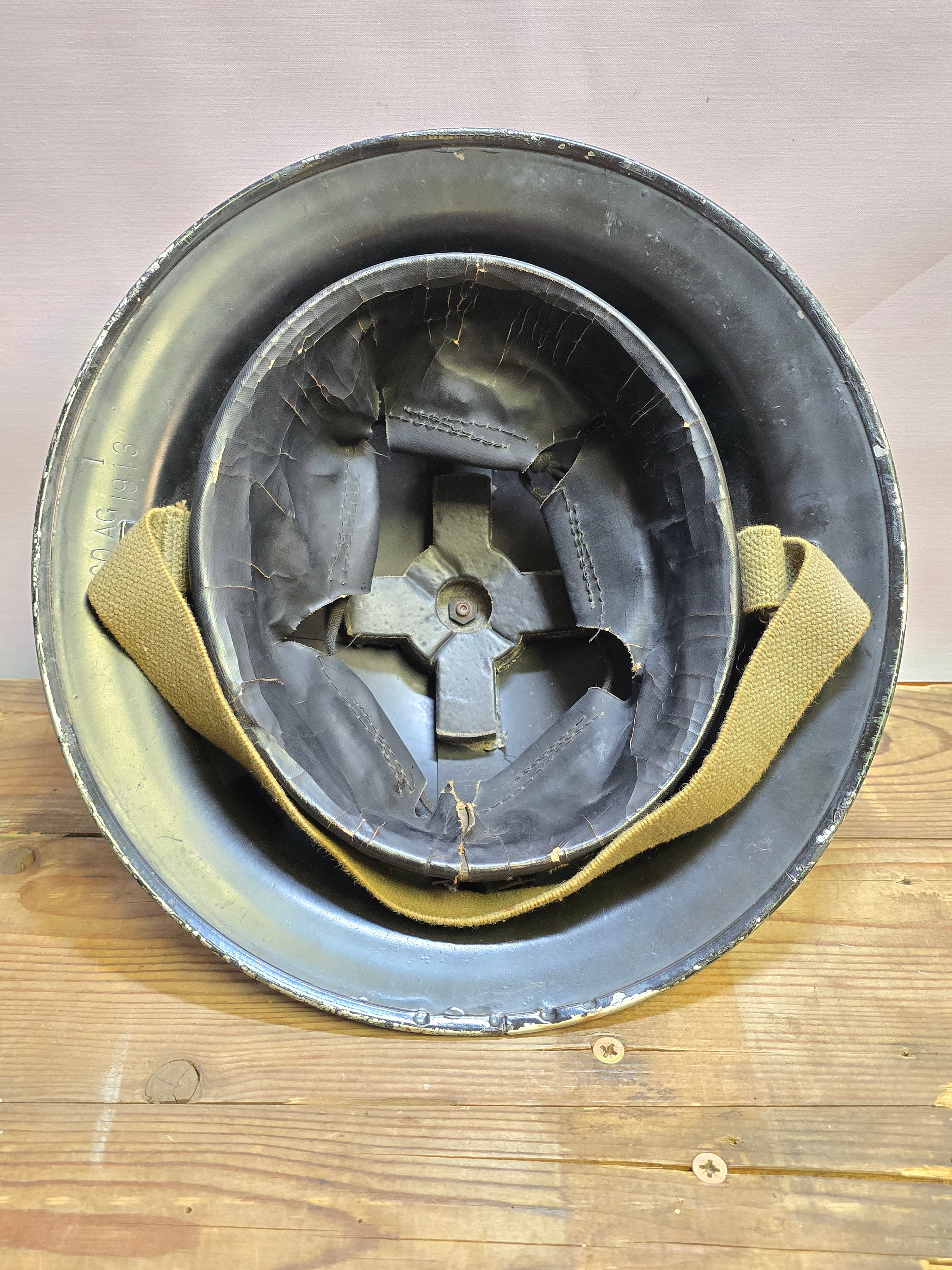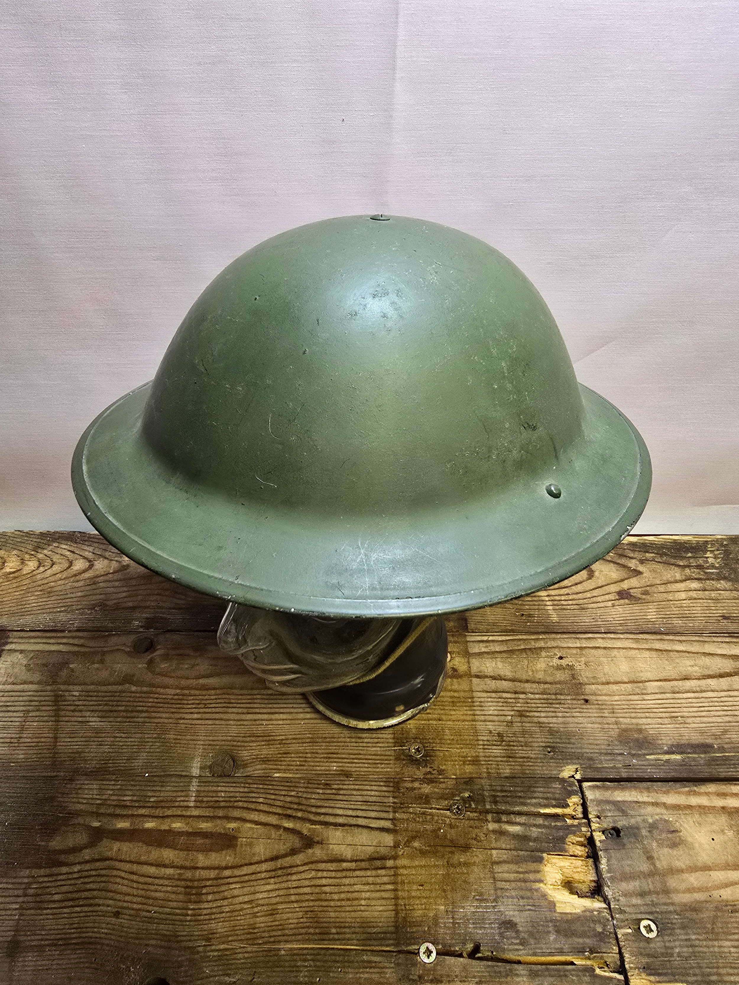WWII British 'Brodie' Helmet Dated 1943 c/w Liner, Strap & Crown Pad.