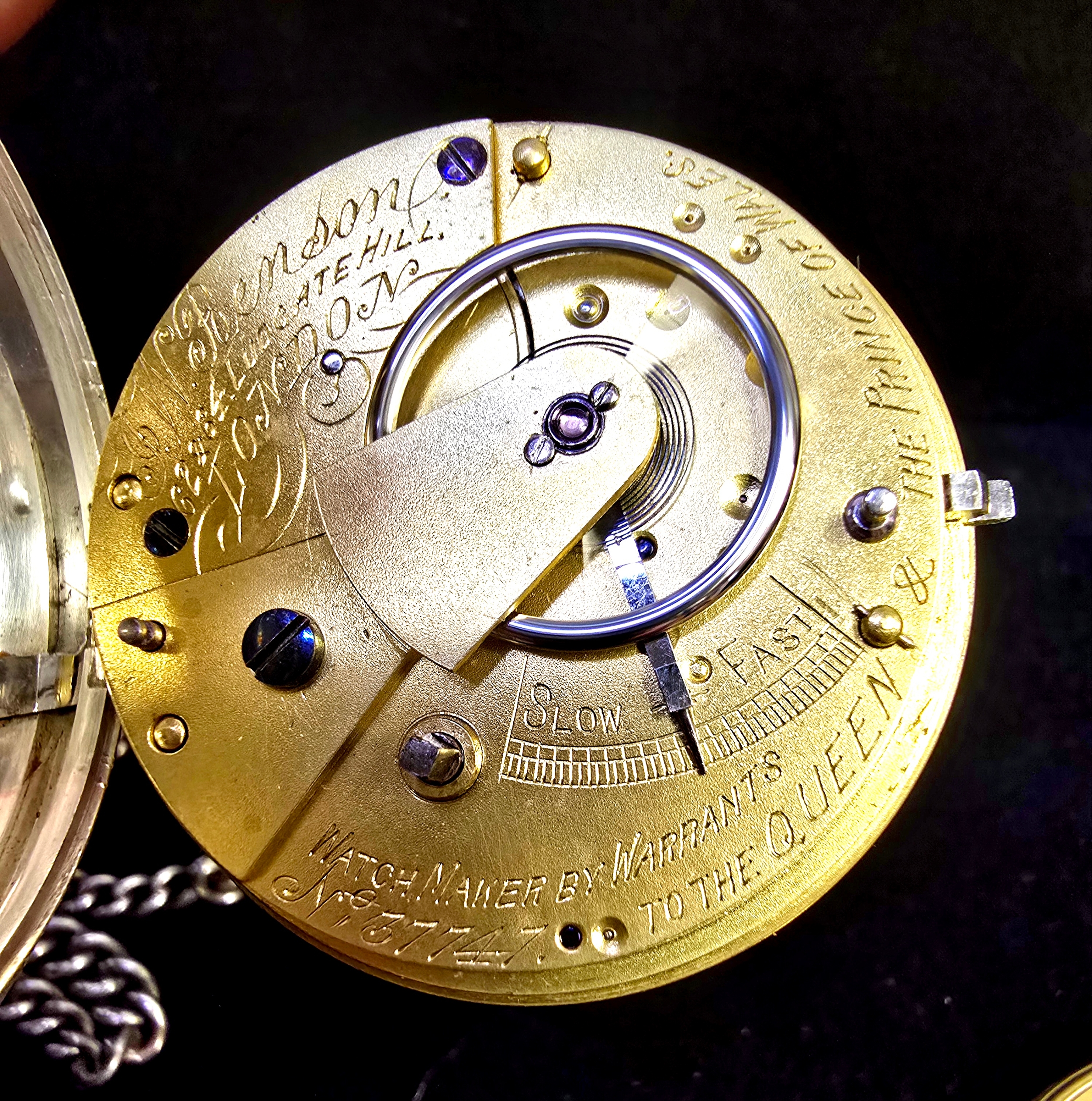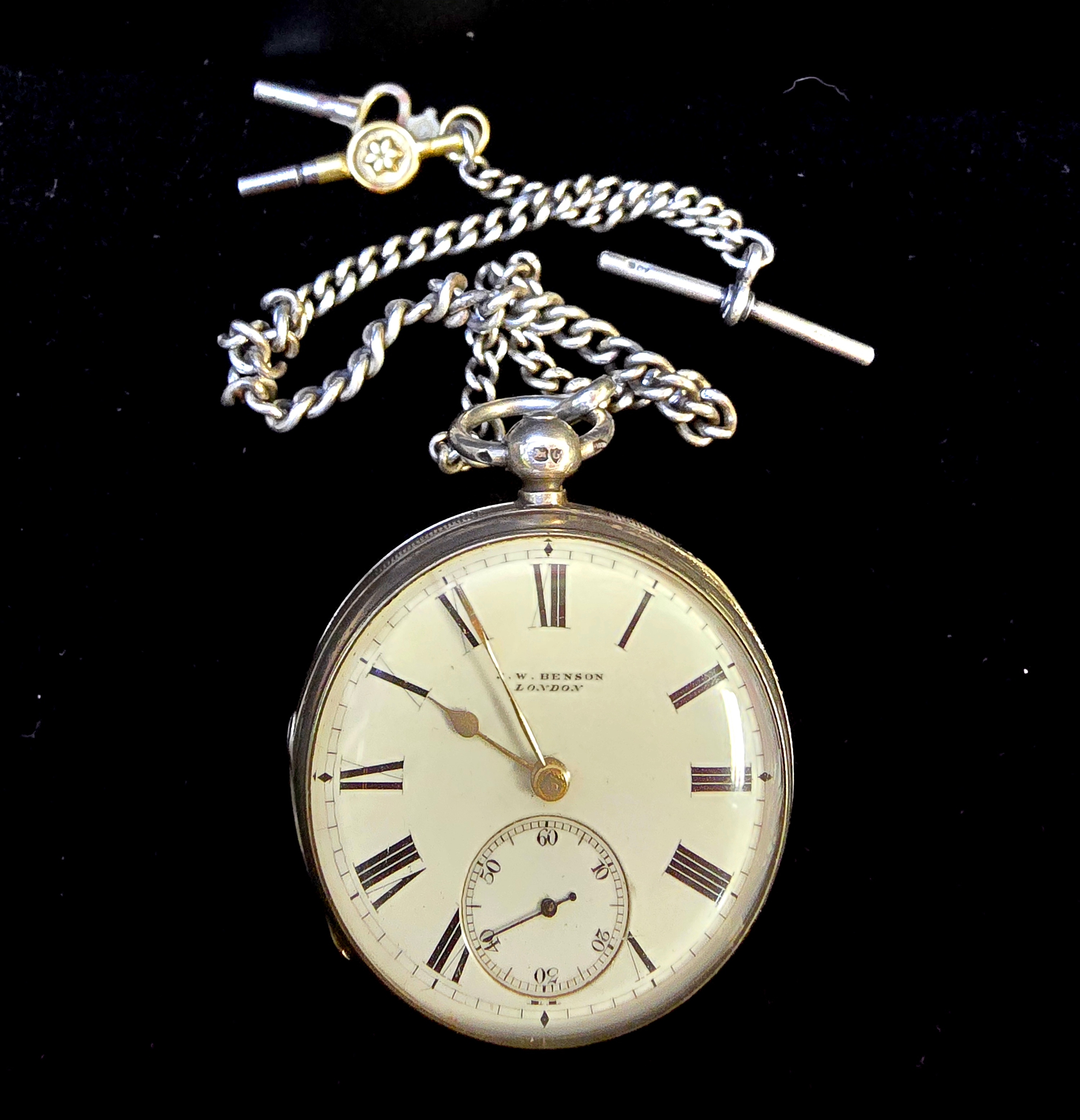1882 Victorian J. W. Benson Silver Pocket Watch and w/ Silve...