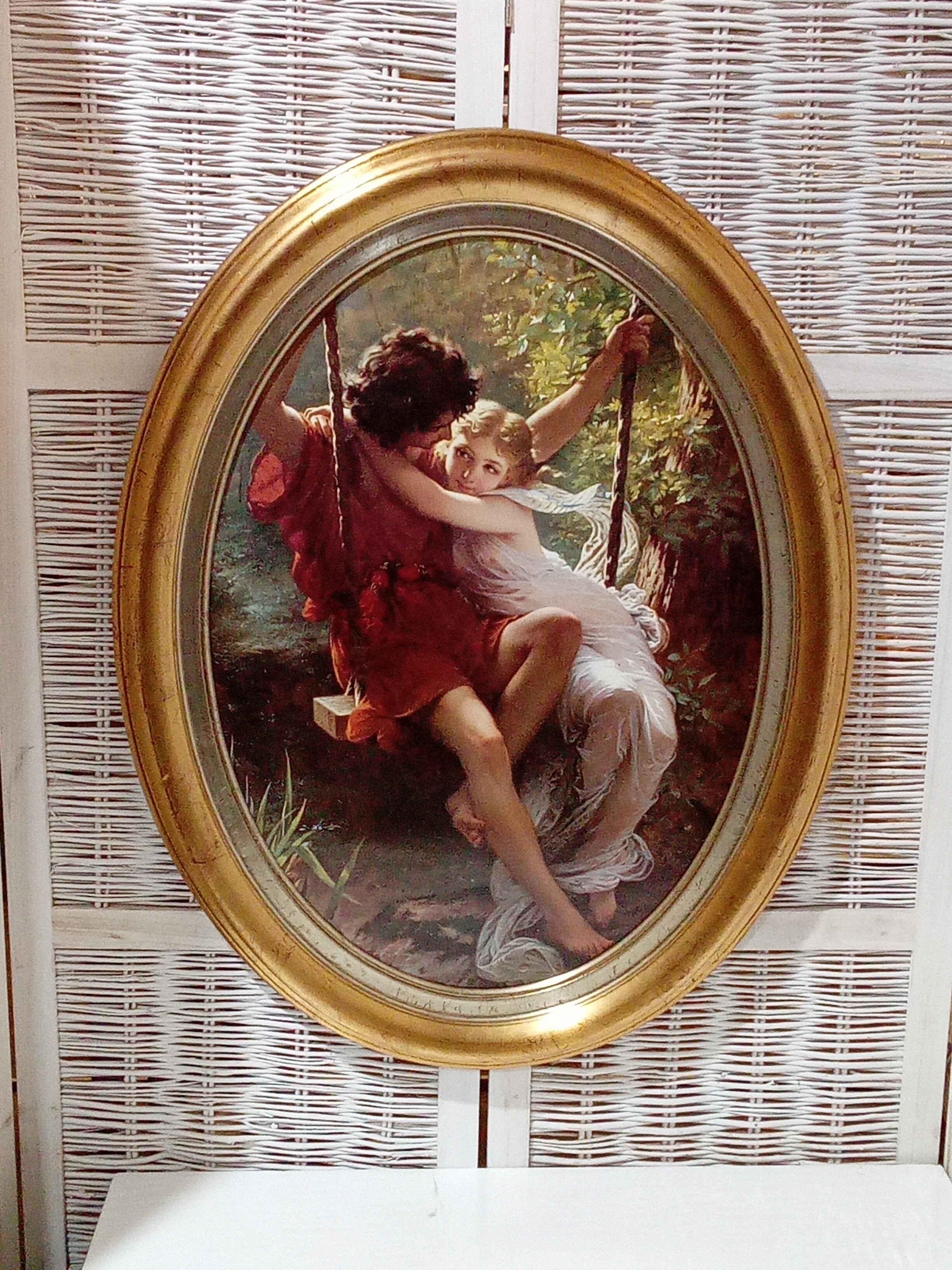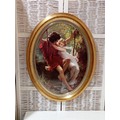 Overlay on Board Wood Framed Oval Picture of 2 Lovers. App. 32" x 24"